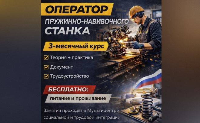 Предусмотрены бесплатные питание и проживание. С 16 марта в Ленинградской области начинается трёхмесячное обучение для участников СВО по специальности «Оператор пружинно-навивочного станка». Программу запускает Кластер комплексного сопровождения и реабилитации совместно с Обуховским пружинным заводом. Программа включает не только теоретическую подготовку, но и практику на производстве. Обучающиеся получат документ об окончании курса и смогут претендовать на трудоустройство. Участникам предоставят бесплатные питание и проживание. Записаться на обучение можно по телефонам: 8 (921) 377-47-47 и 8 (812) 643-03-23.