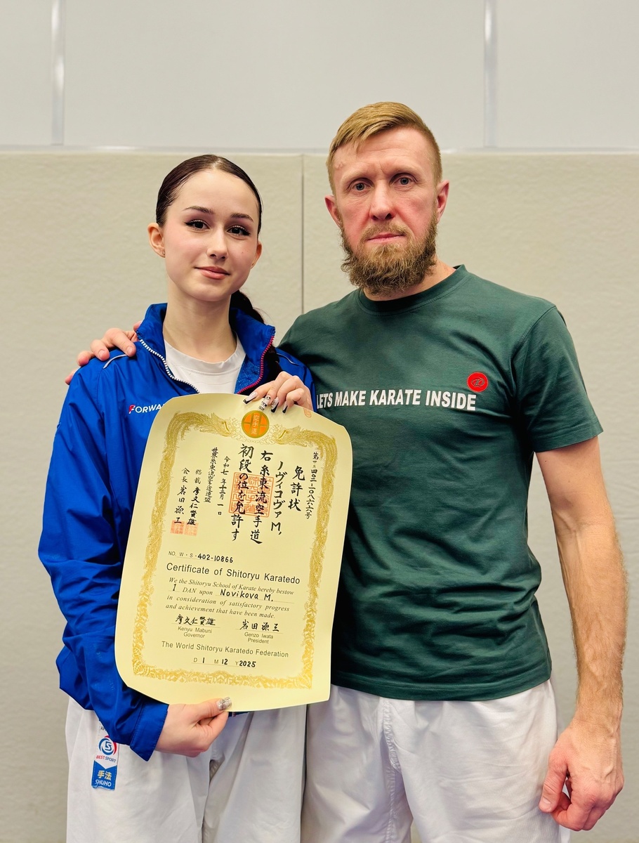 Поздравляем нашу спортсменку- Новикову Марину с вручением диплома о присвоении 1 Дана Сито-рю (WSKF) 📜