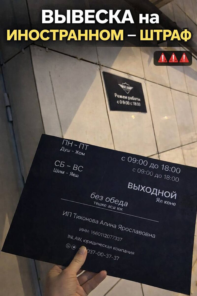 🇷🇺 Что именно изменится? 🔹 До сих пор требование о русском языке распространялось в основном на рекламу и информацию для потребителя. 🔹 С 1 марта 2026 года русский язык обязателен на: • вывесках, табличках, указателях; • сайте и в приложении; • в любой информации, предназначенной для публичного ознакомления потребителей. 📍 Исключение — товарные знаки, фирменные наименования и знаки обслуживания, зарегистрированные до вступления закона в силу. ⚠️ Штрафы за нарушение С 1 марта 2026 года бизнес начнёт получать административные штрафы (весьма щедящие для начала): 📌 Индивидуальные предприниматели и должностные лица: 👉 штраф от 500 до 1 000 ₽. 📌 Организации (юридические лица): 👉 штраф от 5 000 до 10 000 ₽. 📌 Практические рекомендации бизнесу: ✔ Провести аудит всех точек контакта с клиентами — вывесок, информационных табличек, сайтов и приложений. ✔ Перевести (или адаптировать) контент на русский язык так, чтобы он был ведущим по размеру, расположению и заметности. ✔ Зарегистрир