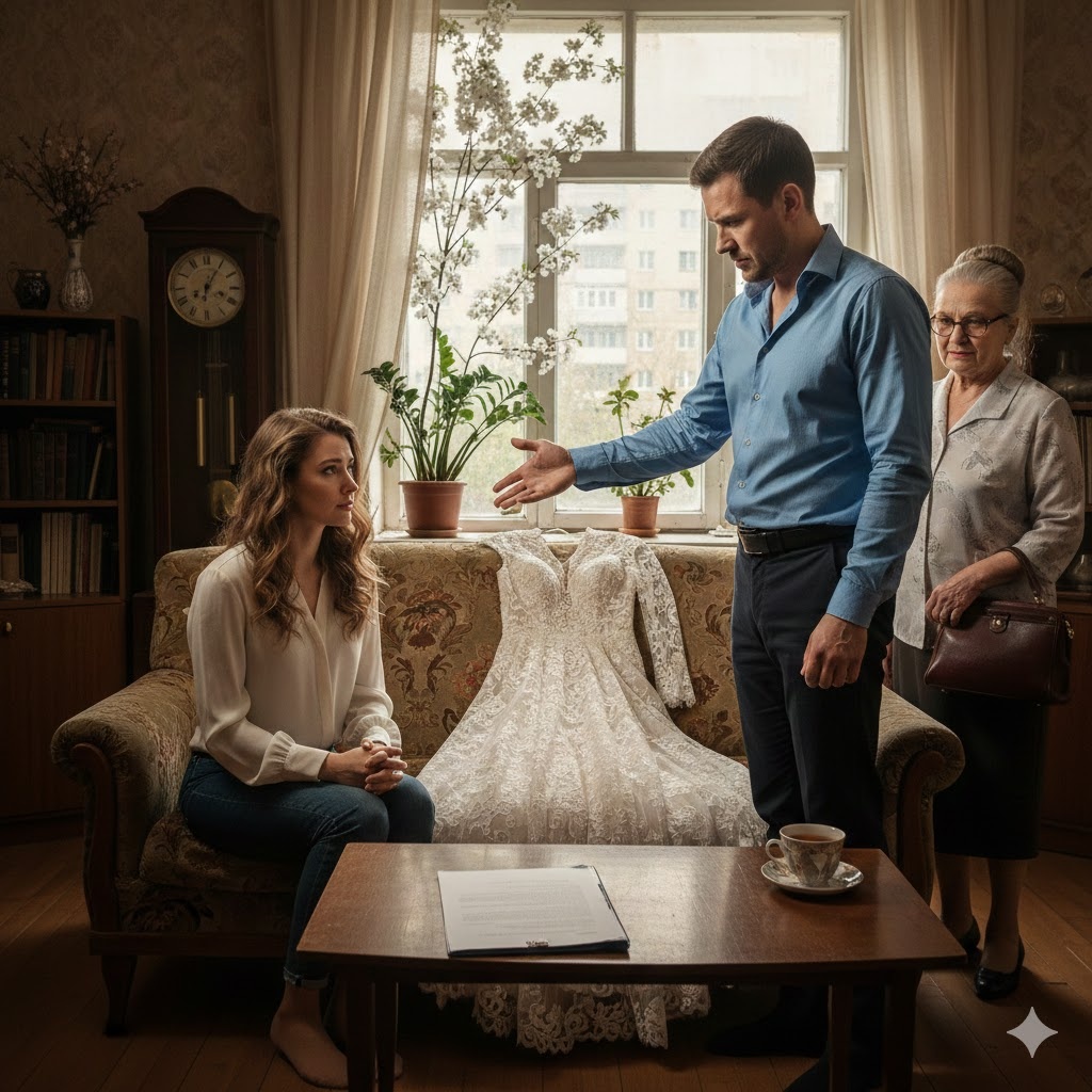 Вадим вошел в комнату, не разуваясь. Его лицо, обычно спокойное и даже немного медлительное, сейчас казалось застывшей маской. Он не смотрел на платье. Он смотрел на Марину так, будто видел перед собой не невесту, а сложную задачу по геометрии.