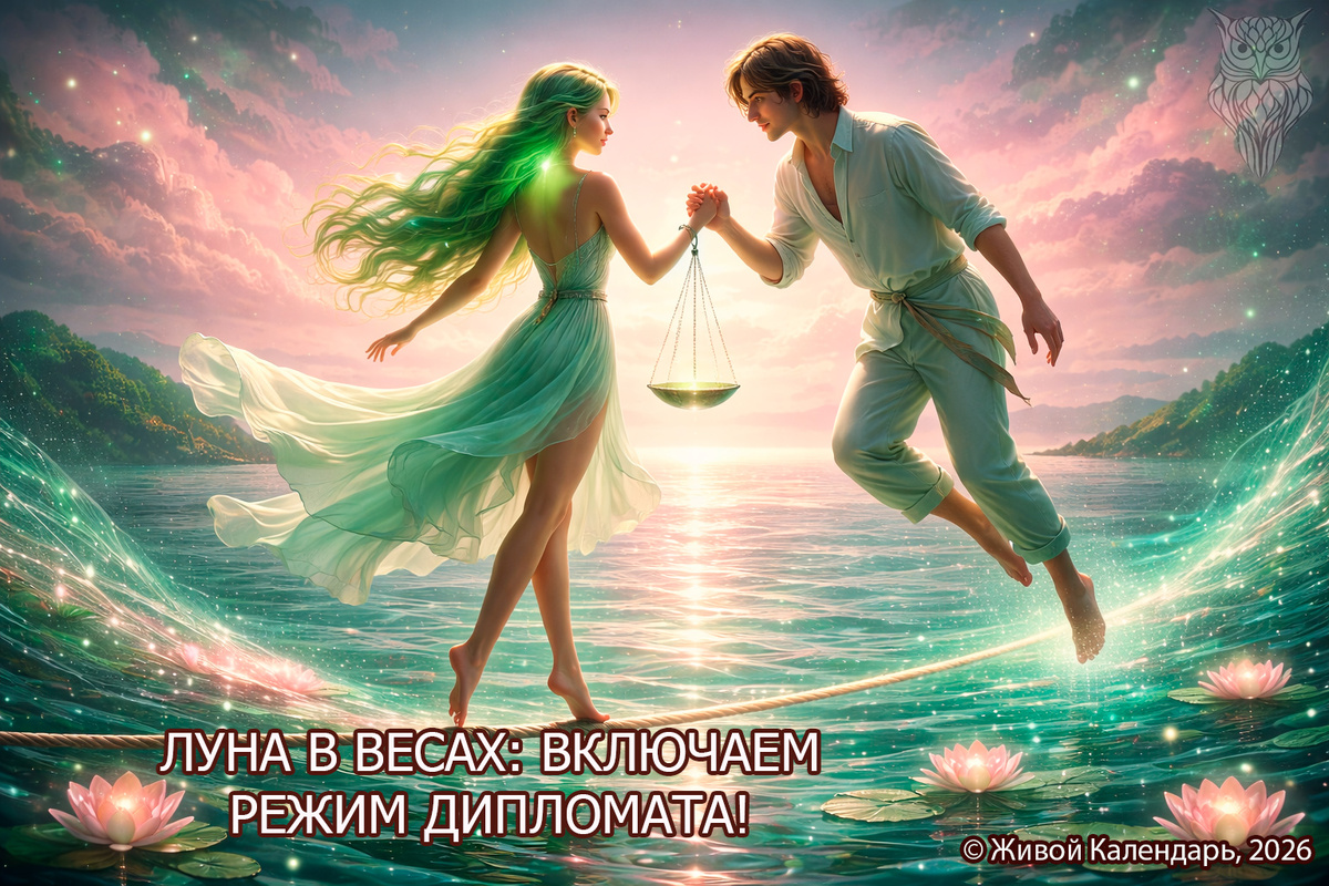 Ваши эмоции сегодня — это точные весы! Стихия — вода, но не бурный поток, а зеркальная гладь, отражающая отношения. Время искать гармонию, красоту и справедливость. Но не потеряйте себя в стремлении угодить всем! По Живому Календарю Луна входит в знак Весов 7 марта в 5:29 и будет в нём находиться до 9 марта 15:01 (по Москве). 📍 8-я статья из 14 в серии «Энергия дня» ⚖️ ЧТО ВНУТРИ (ВАШ ХРАМ РАВНОВЕСИЯ) Сейчас уязвим затылок — ваша скрытая опора. Вы — живой детектор дисбаланса! 🤔 ЛАЙФХАК: Отличный день для дипломатии, искусства, налаживания связей. Но принимайте решения, взяв паузу. Спросите себя: «Это баланс или моя уступчивость?» 🔥 КУДА БИТЬ (ЭНЕРГИЯ ЛИЧНОЙ ИНИЦИАТИВЫ) Пока эмоции ищут пару, сила приходит через личную инициативу и волю! 🎯 КОРОТКИЙ ЧЕК-ЛИСТ ❓ Вопрос для осознанности: