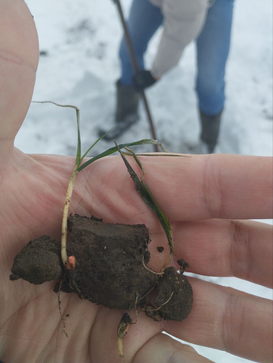 Специалисты осмотрели опытные делянки с озимой пшеницей на поле саратовского агрополигона АгроПромСоюза. Высота снежного покрова на полях учхоза Вавиловского университета в Энгельсском районе Саратовской области - от 20 до 40 см, температура почвы на глубине 6-8см -3,60С. Корневая система в неплохом состоянии, но вот вторичная корневая система не сформировалась. «В целом осень была типичной для нашей зоны. Малое количество осадков и позднее наступление заморозков, недостаток влаги в почве замедлили появление всходов и развитие озимой пшеницы, что не позволило в срок пройти фенологические фазы и перейти от фазы 3-го листа к кущению. За последние 2 года — это типичная ситуация. В весенний период культуры продолжат вегетацию и ситуация нормализуется». - отмечают специалисты, наблюдающие за опытными делянками. О чем свидетельствуют наблюдения на опытном поле? При нормальной увлажнённости почвы озимая пшеница уже осенью формирует вторичную корневую систему. В засушливых условиях верхний сло