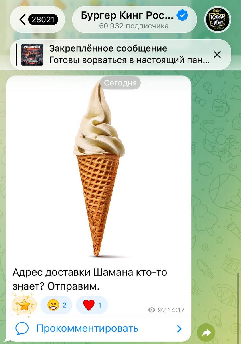Бургер Кинг хочет выслать Шаману мороженое после видоса с Байкалом