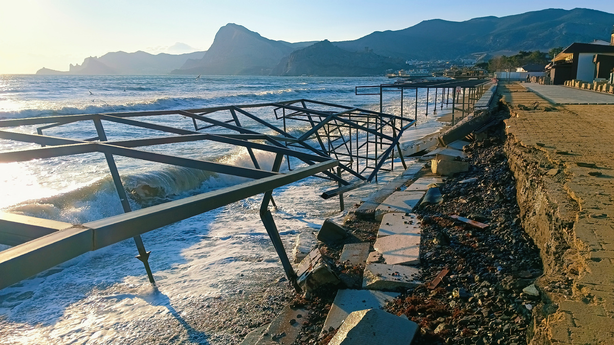 16 февраля 2026 года в Крыму произошла чрезвычайная ситуация в Судаке произошло обрушение участка набережной в районе апарт‑отеля «Атлас». Разрушение случилось из‑за сильного шторма: море подмыло подпорную стену, которая была возведена ещё в советские годы. Что именно разрушилось Подпорная стена не выдержала натиска стихии и обрушилась. По словам заместителя главы администрации Судака Вазгена Карапетяна, конструкция имела конструктивные особенности: плиты были уложены друг на друга без армирования. Это повышало уязвимость сооружения при сильных нагрузках. как сообщается никто не пострадал.