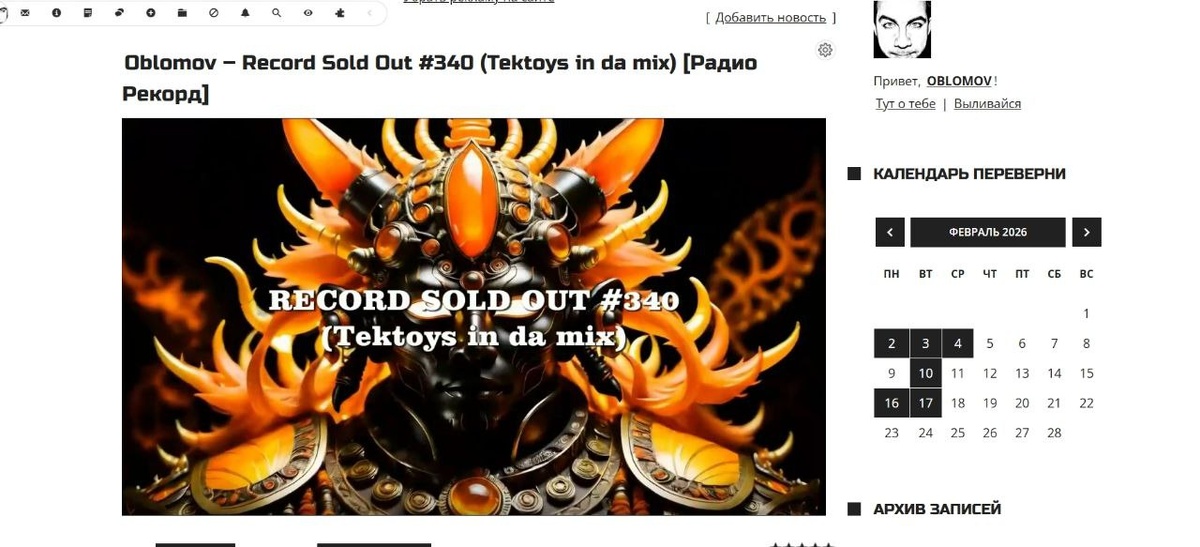 Запись вчерашнего эфира УЖЕ НА САЙТЕ!!! Вот прямая ссылка https://oblomov.ucoz.ru/news/oblomov_record_sold_out_340_tektoys_in_da_mix_radio_rekord/2026-02-17-1672 🔊