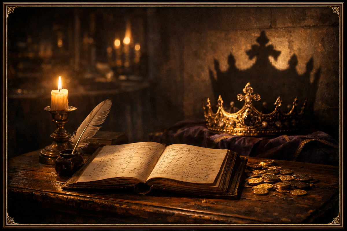 Казначей — самый недооценённый герой истории. Он не пишет мемуаров, не строит замков, не женится шесть раз и не устраивает крестовых походов. Он просто считает. И тихо офигевает седеет.