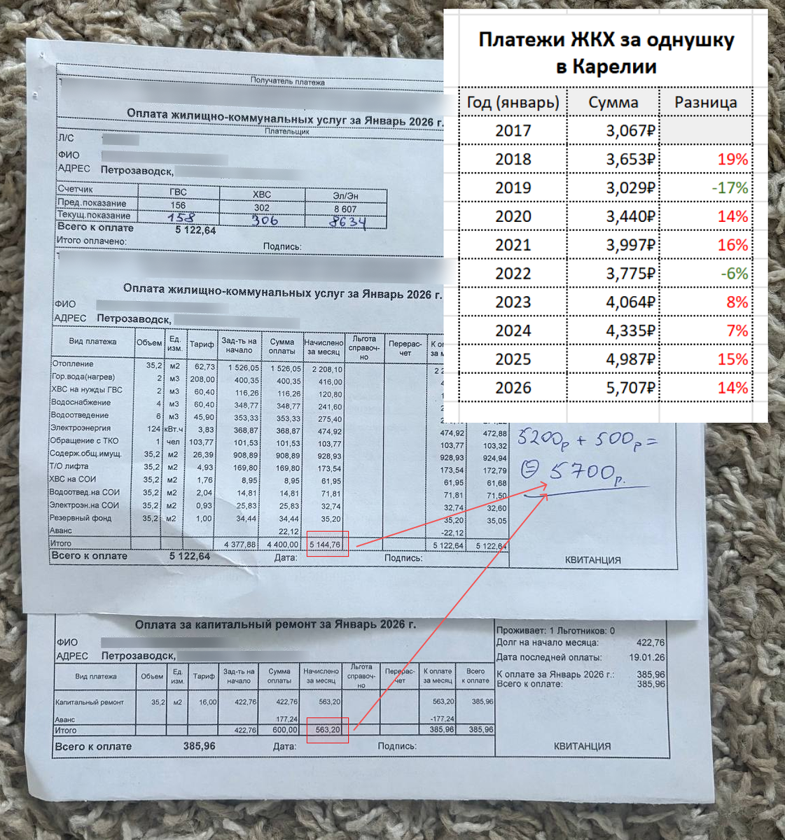 Впервые ощутил себя бедным, когда оплатил услуги ЖКХ. Прихерел сколько насчитали за январь, превышен мой психологический уровень в 5к за однушку. Правительство на голубом глазу обещало, что с 1 января цены вырастут всего на 1,7% из-за повышения НДС 🤡, а по факту я уже заплатил 5707р или на 14% больше прошлого года. Обещают ещё одно повышение в октябре на 10-22% в зависимости от региона, но чёт мне уже страшно. Депутаты похоже поняли, как работает сложный процент. Не берусь анализировать все 15 строчек в квитанции, тёмный лес, хер пойми за что платишь, но храню все платежки. Вот динамика за январь, по годам: Походу становлюсь старым, начинаю резко реагировать на эту категорию расходов. За 10 лет образ жизни в квартире не изменился, это я ещё ванну не люблю, один раз в месяц позволяю полежать, больше не буду, не заработал. ---------------------------------