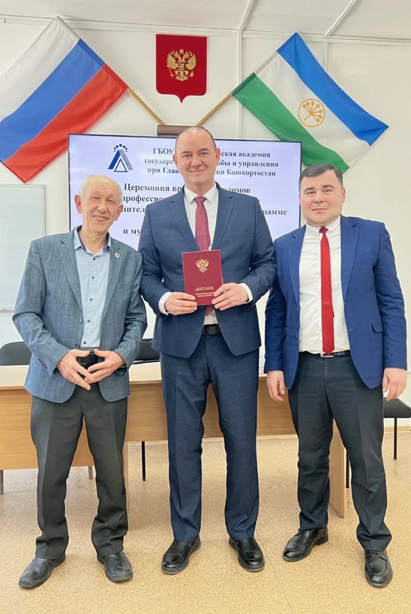 Диплом о профессиональной переподготовке по программе ГМУ Башкирской академии государственной службы и управления при Главе Республики