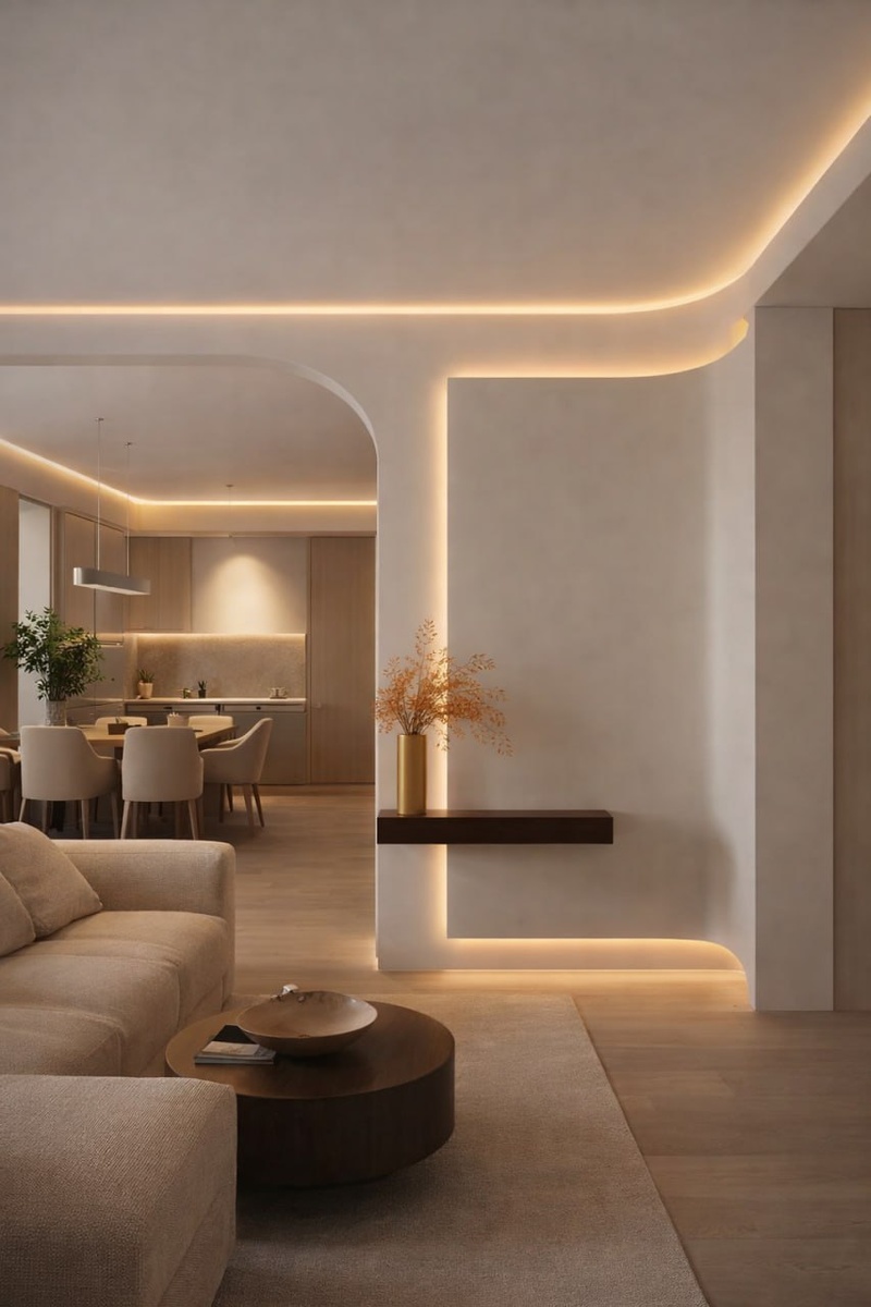 ✔️ Скругления (как на фото) выполнены с помощью нашего готового радиусного профиля из гипса. Без сложных конструкций из гипсокартона ❌ ✔️ Быстрый монтаж ✔️ Аккуратное скругление наружных и внутренних углов ✔️ Изготавливаем радиусы любого размера под проект. На производстве уже активно отливаем радиусные профили для частных и коммерческих объектов по заказам дизайнеров. Нужны цены? Напишите нашему менеджеру https://t.me/ecogipss