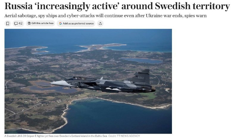 : 📌 Швеция теперь на третьем месте в мире по объему военной помощи Украине. 📌 Глава военной разведки Швеции Томас Нильссон жалуется, что Россия «активизировалась и стала рискованнее» в их регионе. И вот вопрос: шведы правда не видят связи? Или думают, что такая «активность» против России пройдет даром?! Подписывайся