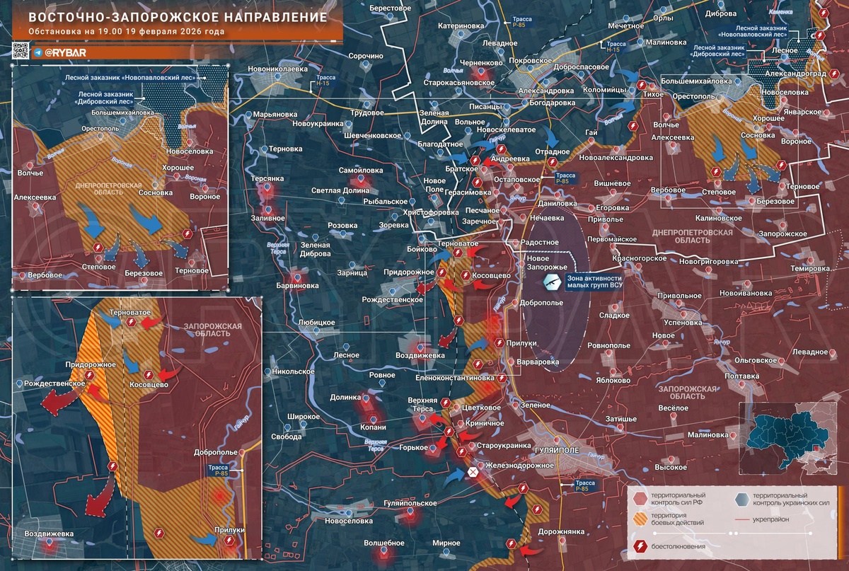 🔸На Восточно-Запорожском направлении продолжаются тяжёлые бои. Некоторые особо ретивые проукраинские ресурсы заявляет о значительных успехах украинских формирований и даже о «крахе» обороны российских войск на стыке Днепропетровской и Запорожской областей. Однако подобные оценки связаны с неверной трактовкой событий, а также плодами трудов западных OSINT-специалистов, которые манипулируют «закрасами» из своих политических предпочтений. 🔸На северном фланге противник действительно смог продвинуться со стороны Большемихайловки. Украинские штурмовые группы некоторое время назад попытались на бронетехнике прорваться через Орестополь и Сосновку и, после чего были рассеяны и частично уничтожены на рубеже Степовое — Березовое — Терновое. Эти населённые пункты ранее находились в глубине второй линии обороны украинской стороны, а теперь фактически оказались передовым рубежом обороны ВС РФ. 🔸Вдоль Гайчура на прошлой неделе присутствие ВСУ фиксировалось в Прилуках, Доброполье, Терноватом и Косо