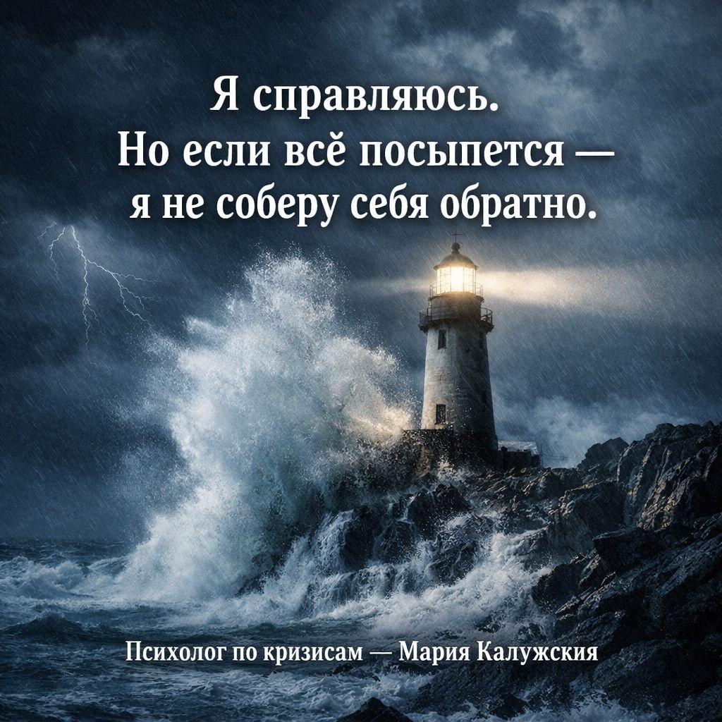 Я работаю с кризисами — личными, профессиональными, экзистенциальными. С теми моментами, когда человек внешне собран, рационален, успешен, а внутри живёт тихий страх: «я держусь из последних сил». Фразу «если всё рухнет — я не выдержу» чаще всего произносят не слабые. Её говорят те, на ком всё держится. В этой статье я разберу это состояние через метафору шторма. Потому что шторм — это не только про обстоятельства. Это про внутреннюю перегрузку, которая копится годами. Страшен не шторм. Страшно, когда внутри нет ощущения устойчивости Шторм начинается не с молнии.