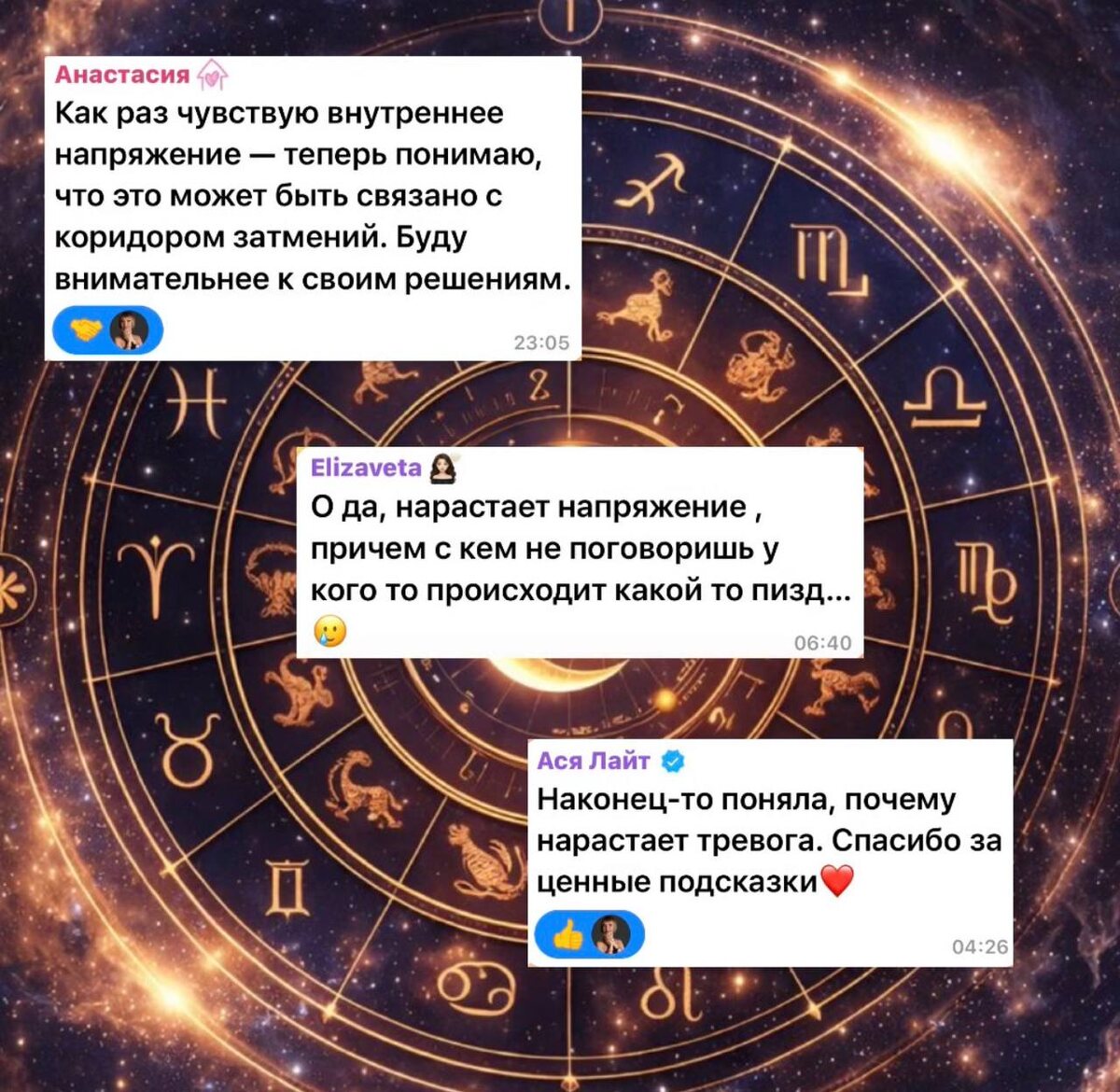 » ? Новолуния и Полнолуния всегда были, есть и будут сложными периодами для нашей психики: на Новолуние 🌑 - темно, Луны не видно на небе, и настроение может становится мрачнее, эмоции подавлены, апатия, усталость или поднимается раздражение и агрессия. на Полнолуние 🌕 - Луна большая и яркая, а значит и эмоции становятся ярче, сильнее проявляются, но они не стабильные - так и тянет покачаться на «эмоциональных качелях». Скрытые и подавленные эмоции, страхи и чувства легко могут «прорваться» наружу, часто бывает необоснованная тревога, тревожные сны и бессонница. А Затмения - это лакмусовая бумажка для проверки нашей психики: в это время ещё сложнее становится контролировать свои эмоции, сдерживать агрессию, раздражение и напряжение (заложенное в карте рождения) и внутренние конфликты. 💣 Кого же «накрывает» больше всего? Особенно «накрывает» в эти периоды людей с выраженной водной стихией в карте рождения: у кого Луна в 1,4,8,12 домах, а также в связях с высшими планетами. Эмоции