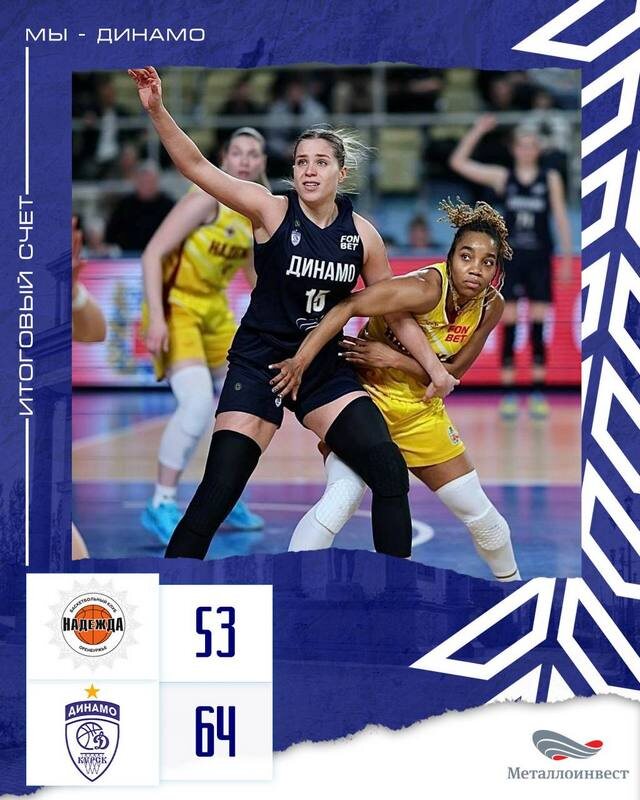 Вечером 19 февраля баскетболистки «Динамо» (Курск) одержали вторую победу во втором раунде регулярного чемпионата женской премьер-лиги за 1-6-е места. В первом выездном матче скоротечного турнира команда Александра Ковалева обыграла его бывший коллектив — оренбургскую «Надежду» со счетом 64:53 (21:17, 19:13, 21:10, 3:13). Играли четвертая и вторая команды по итогам первого этапа. Пятью очками подряд Ольга Фролкина обозначила перевес гостей. К исходу стартовой четверти курянки сохранили 4-очковый перевес — 21:17. К большому перерыву было уже «плюс 10» — 40:30, а после получаса игры 61:40. Самым ударным для динамовок и решающим стал третий период. Тем интереснее оказался 4-й отрезок встречи, в котором КУрск набрал всего три очка, уступив «минус 10». На исход встречи это, конечно,не повлияло. Ударный дуэт «Динамо» сегодня: Фролкина — 23 очка и Киара Линскенс, оформившая дабл-дабл — 12 + 14 подборов. Следующую игру третьего круга наша команда проведет в Курске 23 февраля. В гости пожалует
