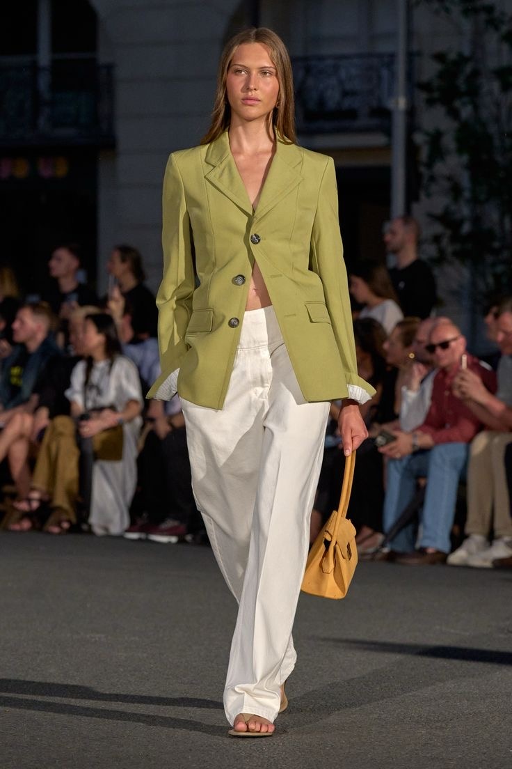📌Узкие брюки никуда не исчезли, просто теперь они требуют другого подхода. Агрессивные супер-скинни уступают место более спокойным моделям, напоминающим «сигареты».