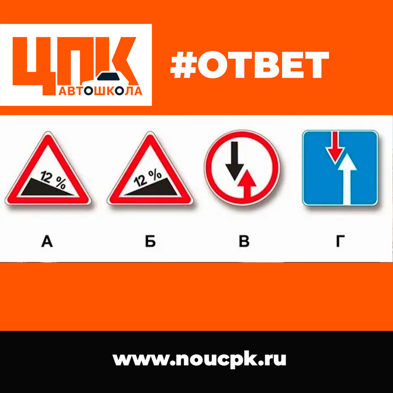 ⚖️ Правильный ответ: 2️⃣ — знаки А и В. Разложим по правилам: ① Уклоны: кто уступает? П. 11.7 ПДД: при затруднённом встречном разъезде на уклонах, обозначенных предупреждающими знаками 1.13 «Крутой спуск» (А) и 1.14 «Крутой подъём» (Б), уступает водитель, который движется на спуск. То есть если есть знак «Крутой спуск», это уже ситуация, когда при встрече на узком участке по ПДД должен уступить тот, кто едет вниз. ② Узкий участок и знаки 2.6 / 2.7 Знак 2.6 «Преимущество встречного движения» (В) устанавливают перед узким участком дороги. Его требование: запрещается въезд, если это может затруднить встречное движение, водитель обязан уступить дорогу встречным ТС, уже находящимся на узком участке или подъезжающим к нему. Знак 2.7 «Преимущество перед встречным движением» (Г), наоборот, даёт преимущество. ③ Почему именно «А и В» — Знак А (1.13 «Крутой спуск») — на уклоне спуска по п. 11.7 уступает тот, кто спускается. — Знак В (2.6 «Преимущество встречного движения») — на узком участке