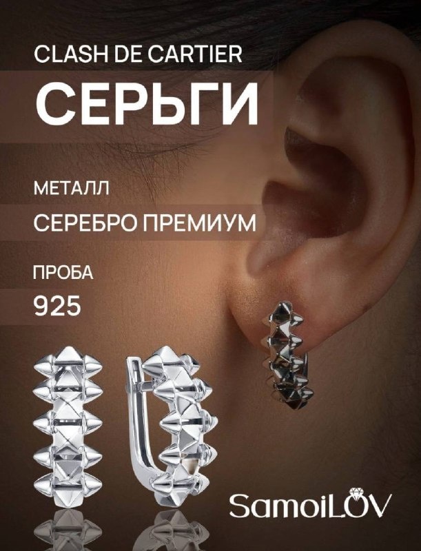 Серьги Картье Клеш в серебре — это смелый дизайн, где гладкий металл встречается с острыми шипами