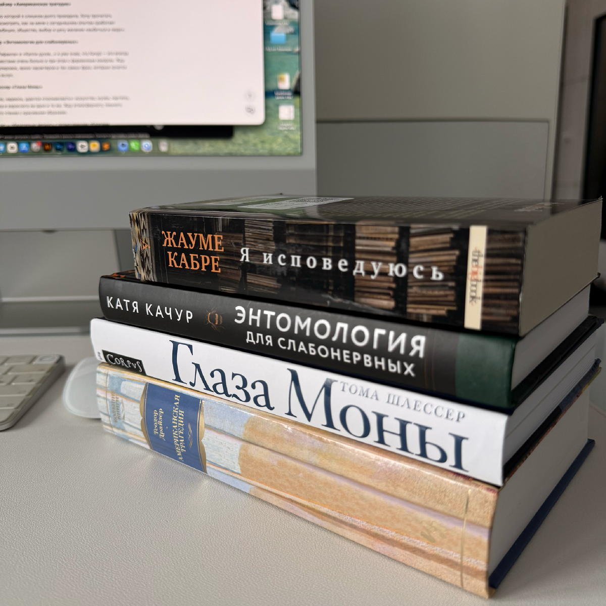📘 Жауме Кабре «Я исповедуюсь» Та самая легендарная «кирпич-книга», о которой столько говорят. Жду от неё тотального погружения, сложной, многослойной истории, где придётся работать головой и сердцем одновременно. Кажется, это будет роман, после которого нужно будет делать паузу на переваривание. 📘 Теодор Драйзер «Американская трагедия» Классика, мимо которой я слишком долго проходила. Хочу прочитать неспешно и посмотреть, как на меня с сегодняшним опытом сработает история про амбиции, общество, выбор и цену желания «выбиться в люди». 📘 Катя Качур «Энтомология для слабонервных» После «Гена Рафаила» и «Капли духов…» я уже знаю, что Качур — это всегда живо, остро, местами очень больно и при этом с фирменным юмором. Жду точных формулировок, ярких характеров и тех самых фраз, которые хочется перечитывать вслух. 📘 Тома Шлессер «Глаза Моны» Книга, которую, надеюсь, удастся «посмаковать»: искусство, музеи, картины, взгляд ребёнка и взрослого на одно и то же. Жду атмосферного, немного меди