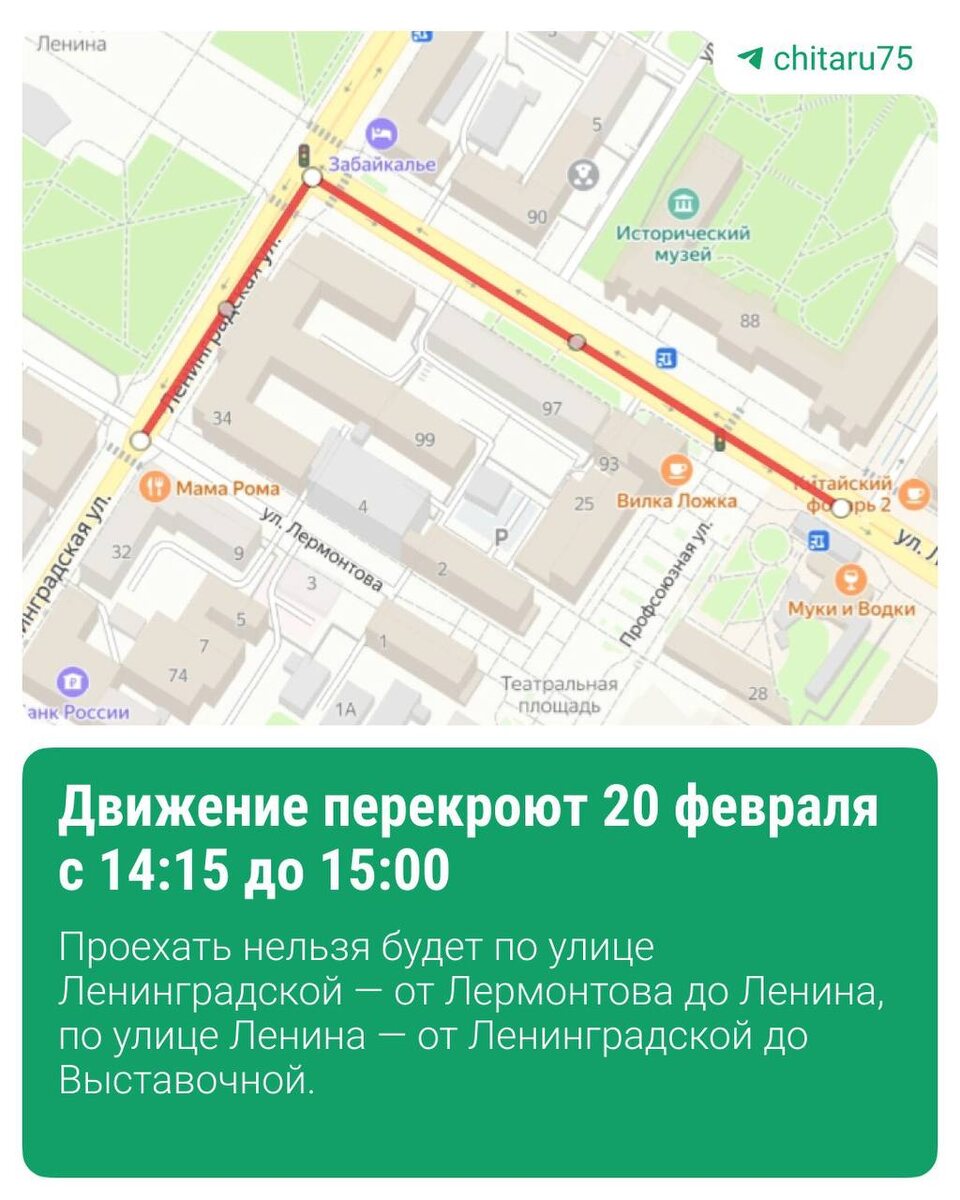 Дороги в центре Читы перекроют завтра на 45 минут