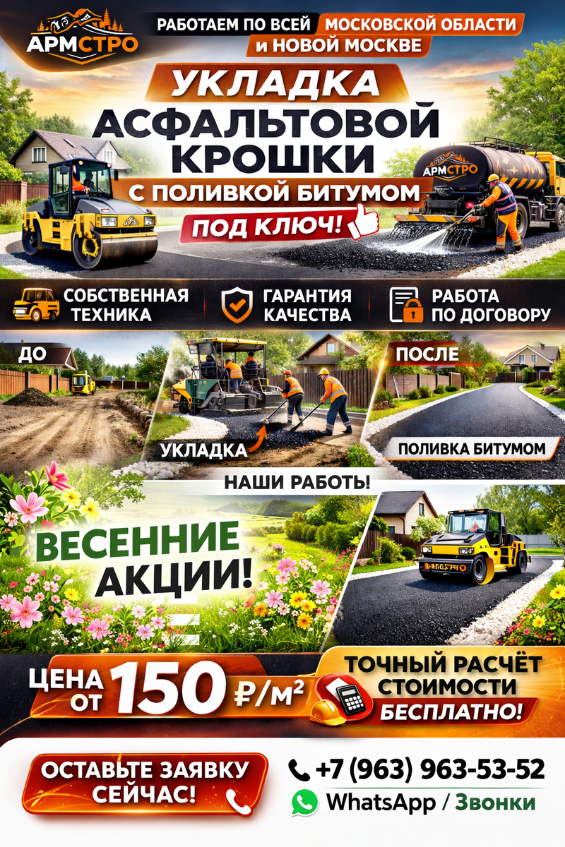 ✔ Консультация и расчёт стоимости под ваш объект 📍 Работали на объектах частных домов, дачных участков, подъездных дорог, стоянок. 📞 Пишите прямо сейчас — рассчитаем точную цену за м² и подберём удобное время для замера! Мы профессионально выполняем укладку асфальтовой крошки с подливкой битумом во всех городах Московской области и Новой Москвы: