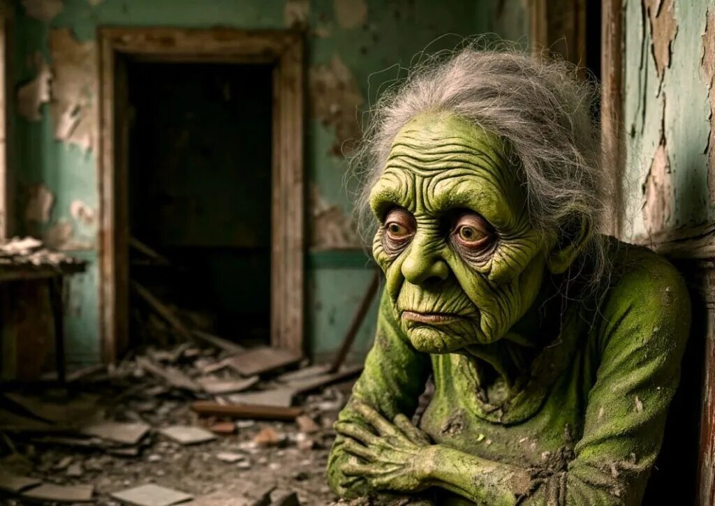 Зелёная Бабка Рассказ основан на реальных событиях из жизни Дом № 17 на Мельничной улице давно считали проклятым. Он стоял на отшибе, заросший бурьяном выше окон, с выбитыми стёклами и покосившейся крышей. Местные обходили его стороной, а дети пугали друг друга: «Если заглянешь в окно — она увидит. И придёт за тобой». — Да ладно тебе, Макс, — Денис пнул камешек в сторону ветхого крыльца. — Это просто старый дом. — Ты сам слышал, что бабушка говорила, — Макс поёжился. — В нём живёт она. Та, что забирает тех, кто зайдёт внутрь. — Сказки для малышей, — фыркнул Денис. — Спорим, я зайду и вынесу что‑нибудь оттуда? — На что спорим? — Если выиграю — ты весь месяц даёшь мне списывать математику. Макс помолчал, глядя на тёмные провалы окон. — Ладно. Но если что — я тебя предупреждал. Денис ухмыльнулся, поднялся по скрипучим ступеням и толкнул дверь. Та распахнулась с протяжным стоном. Воздух был густым от пыли и затхлости. Под ногами хрустели осколки стекла, обрывки газет, какой‑то мусор. Стены