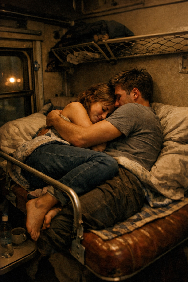 Он опускается на мою нижнюю полку. Ширина этого дерматинового ложа — ровно шестьдесят сантиметров. Полка жесткая, короткая, с торчащим сбоку металлическим ограничителем. Для одного человека это испытание. Для двоих — физическая невозможность. Но мы тогда не знали законов физики. Мы знали только один закон: пространство между нашими телами — это ошибка, которую нужно немедленно исправить.