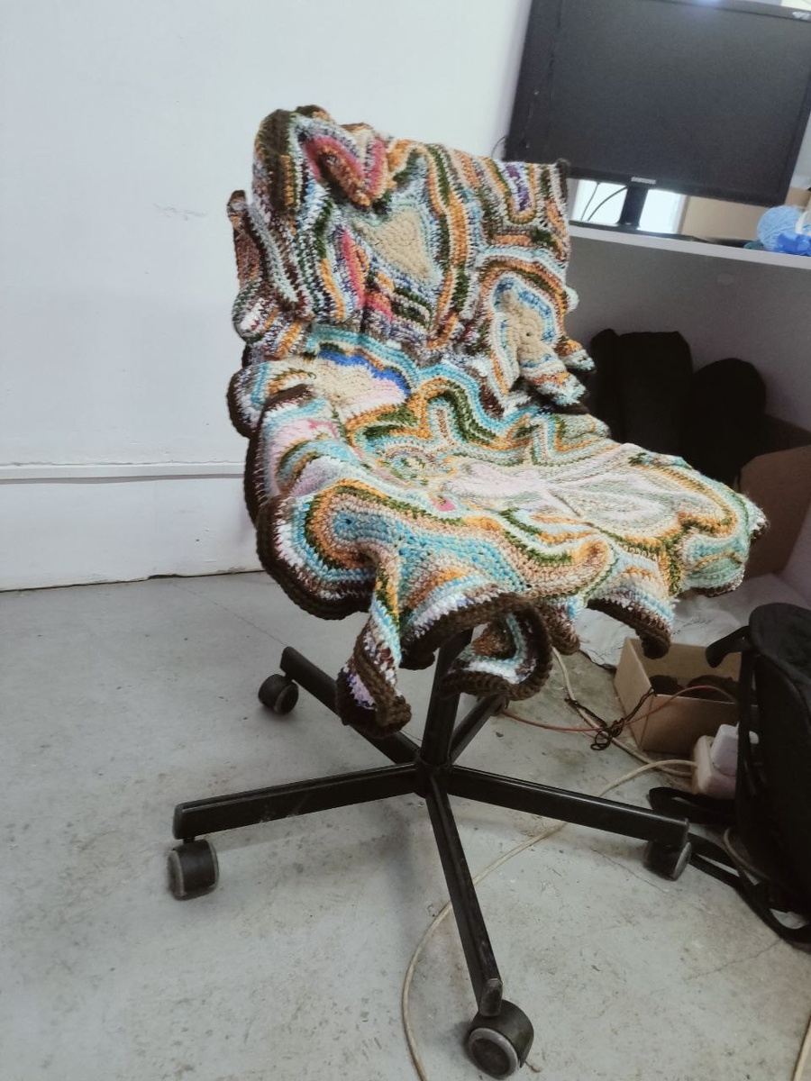 Первая работа закончила. Это накидушка на стул. Теперь на работе не так холодно сидеть.