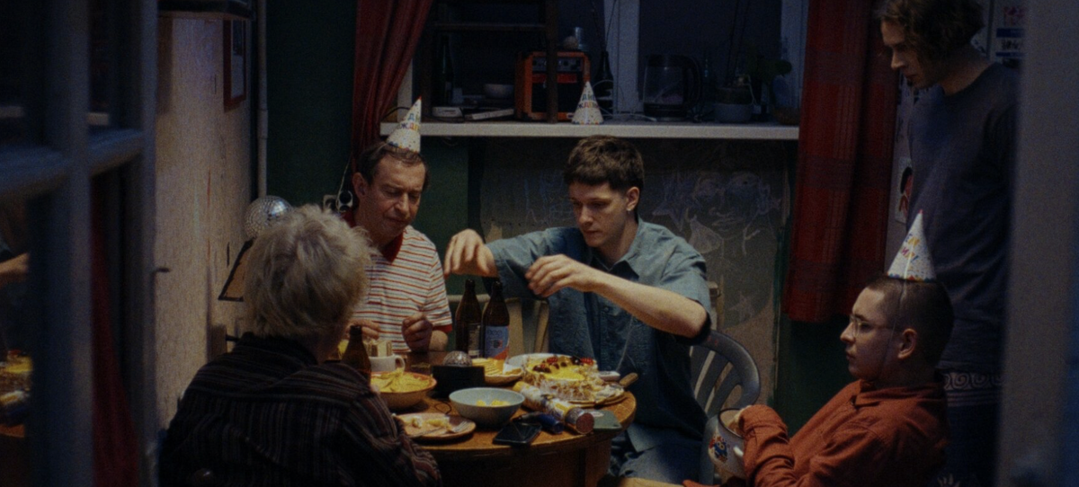 5 февраля в широкий прокат вышел фильм Сергея Малкина, драмеди о рокерах-раздолбаях, вынужденных присматривать за пятидесятилетним мужчиной с ментальными особенностями. Давайте попробуем разобраться, чем цепляет этот эмоциональный аттракцион и почему важно посмотреть на него именно крупным планом, на большом экране, в полном зале незнакомых сопереживателей. Закройте глаза и представьте, что вы заходите в коммуналку. Проходите по узкому коридору, заставленному бытовыми предметами без четкой прописки и определенного владельца. Повернув за угол, вы видите уютную кухню с круглым столом, белыми полупрозрачными занавесками и стульями, непохожими друг на друга, как и люди, которые здесь обитают. У плиты стоит сосед и жарит картошку в борцовских шортах, слегка пританцовывая. А вы и зашли то всего на минутку, но уже совершенно никуда не торопитесь, хотите задержаться подольше в слегка уловимом тепле и дружелюбии. Здесь кухня становится сюжетообразующим местом, где собираются не ради еды, а для