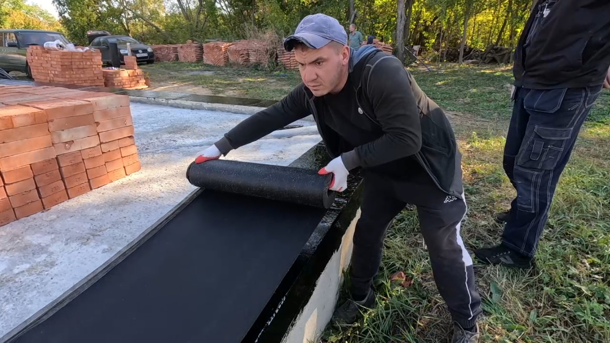 6. Защита: По свежей гидроизоляции нельзя ходить! Сразу же начинайте кладку первого ряда стен, чтобы укрыть материал от солнца и случайных повреждений.