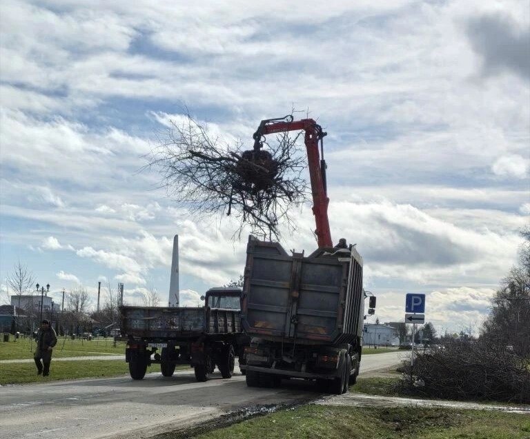На территории района продолжается активная работа по вывозу сломанных деревьев и веток с использованием специализированной техники.
