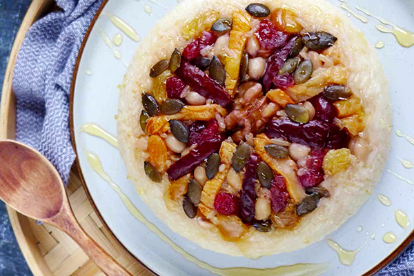 Есть сладости, которые держатся на воздушности, кремах и «невесомости». А есть китайская школа: клейкий рис + начинка + россыпь сухофруктов и орехов. Получается десерт тёплый, плотный, очень домашний — и при этом праздничный. Ба Бао Фань (八宝饭) переводят как «рис восьми сокровищ». Его часто готовят к Лунному Новому году: по смыслу это про изобилие — много разных «добавок», много цвета, много текстур. И да, «восемь» здесь не обязано быть математикой: важнее сама идея богатого набора. В китайской культуре число 8 считают счастливым и часто связывают с достатком и процветанием. Поэтому «восемь сокровищ» читается как пожелание благополучия.