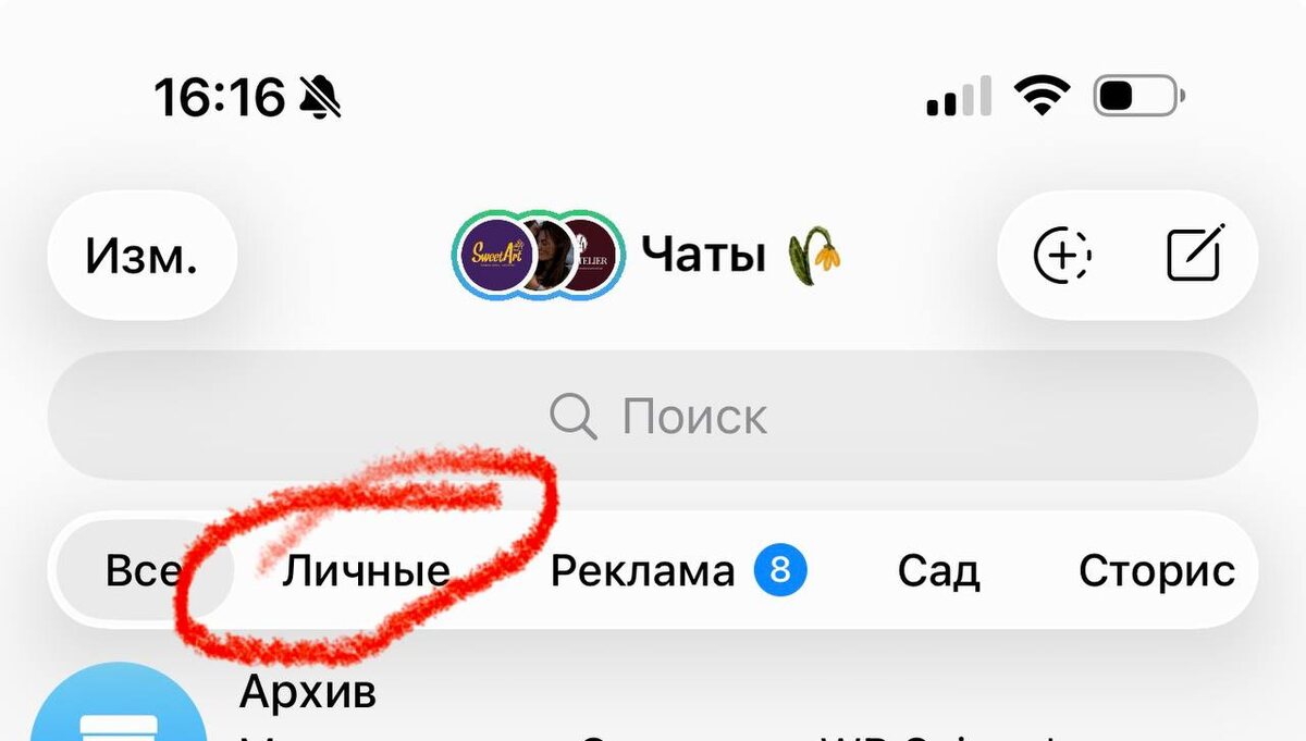 Разгребла завал неотвеченных личных диалогов Чтоб вы понимали, еще утром тут было 80+ диалогов, которые я не могла себя заставить открыть0️⃣ Когда то давно знакомая мне сказала: «а ты сделай себе в настойках вкладку с личными диалогами, чтобы не терялись» Ага😅 Оказалось, что дело не том, что я их прост теряю. Но и это тоже Просто у кого то не хватает на них другого ресурса