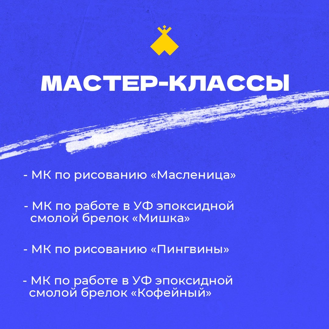 +) 📍с 20 февраля 📍Центр «Гармония» (г. Нарьян-Мар, ул. Ненецкая, д. 14, подъезд 4) 📍800 рублей ⏹️МК по рисованию «Масленица» – 20 февраля в 17:45 ⏹️МК по работе в УФ эпоксидной смолой брелок «Мишка» – 20 февраля в 19:00 ⏹️МК по рисованию «Пингвины» – 21 февраля в 10:00 ⏹️МК по работе в УФ эпоксидной смолой брелок «Кофейный» – 21 февраля в 11:30 Проведите время с пользой и удовольствием! Записаться можно по ссылке или телефону 8-911-068-15-09. 🥰 Не забудьте подписаться на канал 📪 Мы в МАХ!