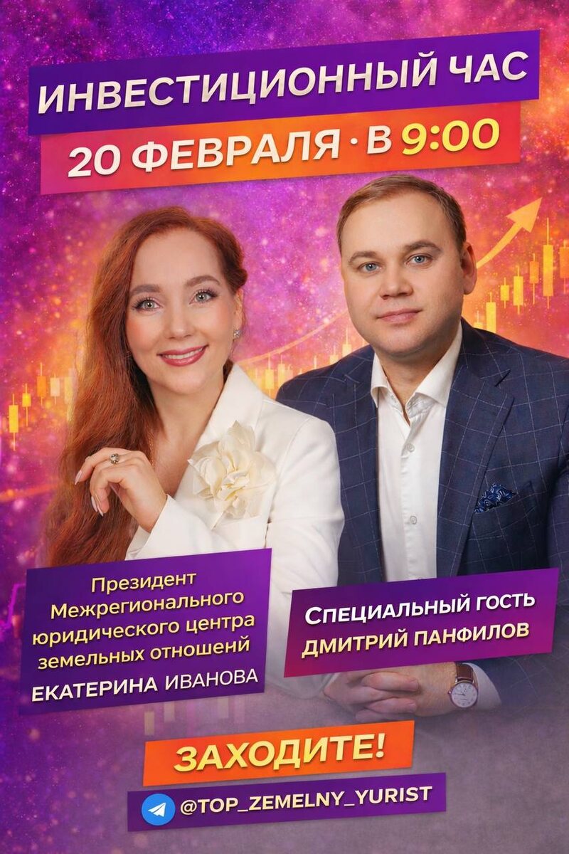 20 февраля в 09:00 (мск) на моём Telegram-канале «Топовый земельный юрист» пройдёт инвестиционный час со специальным гостем. 🎙 Специальный гость — Дмитрий Панфилов — основатель инвестиционной платформы PANFILOV — предприниматель с опытом более 16 лет в строительстве и недвижимости — инвестор в российские и зарубежные проекты — эксперт по привлечению капитала и созданию пассивного дохода. Мы поговорим о том, что сегодня реально работает в инвестициях, без инфо-шума и красивых обещаний. На эфире разберём: ✔ где предпринимателю быстро привлечь деньги в проект ✔ как инвестору выстроить пассивный доход ✔ какие проекты сегодня получают финансирование ✔ главные тренды рынка недвижимости 2026 ✔ как соединяются юридическая стратегия земли и инвестиционный капитал Это разговор практиков: земельного юриста и инвестора, который ежедневно работает с реальными проектами и деньгами. Если вы: — инвестируете в землю или недвижимость — запускаете проект и ищете финансирование — хотите понимать, ку
