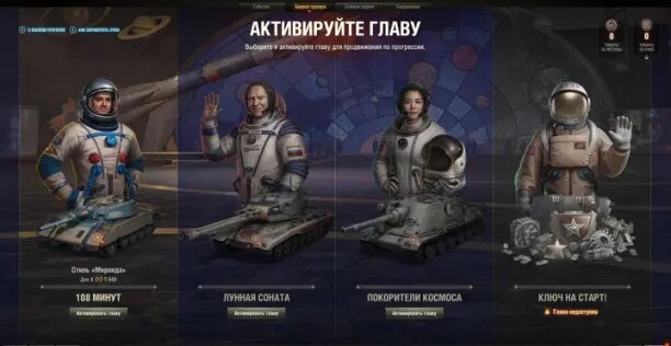 Классическая структура остаётся: основные главы дают технику и уникальные награды, ресурсная — полезные расходники и ускорители прокачки. 2. Настоящий космонавт в экипаже