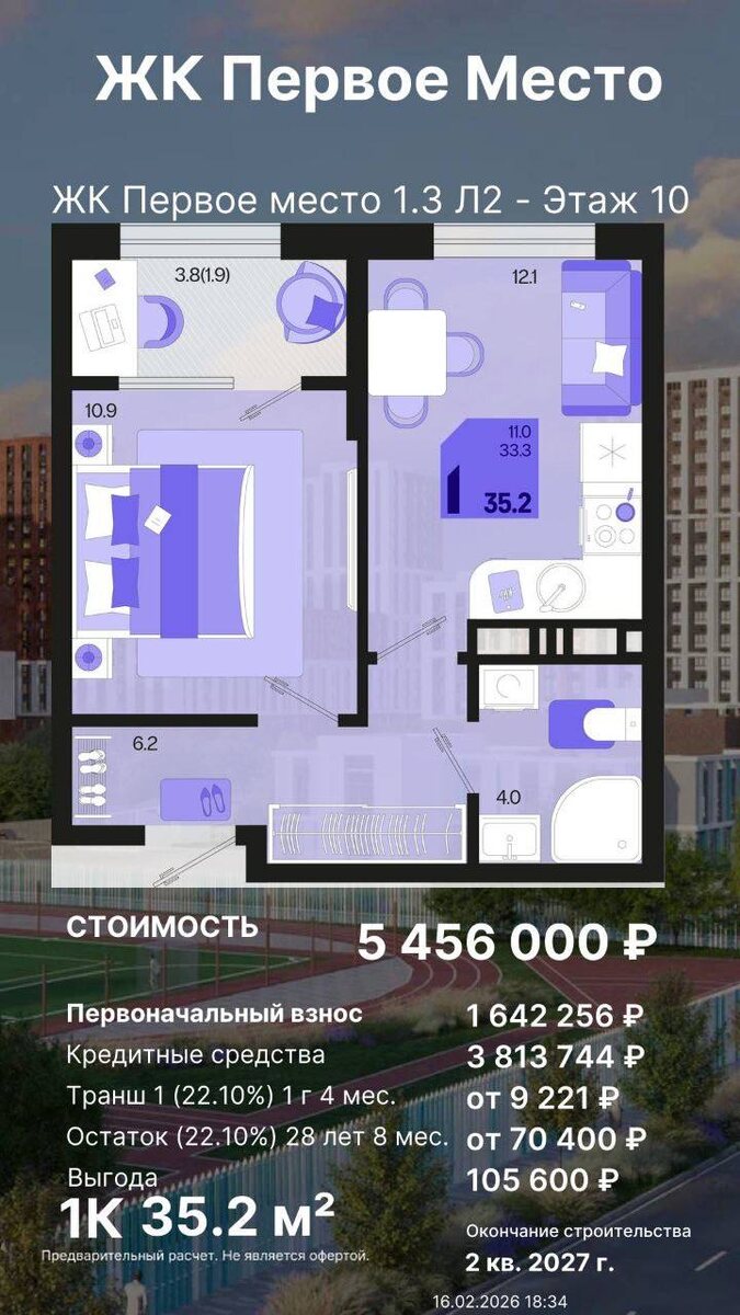 Возможность до окончания строительства вносить небольшую сумму, а после уже полный остаток. Подходит для тех, кто хочет зафиксировать квартиру и цену, пока продается собственная недвижимость. Либо у кого храниться средства на вкладе. Оставляйте заявку на нашем сайте или звоните по тел: 88002001023 What app: +78612042910 Задайте вопрос нам в чат Делитесь нашим каналом https://dzen.ru/id/664dd8eddddfdf4d55debd30
