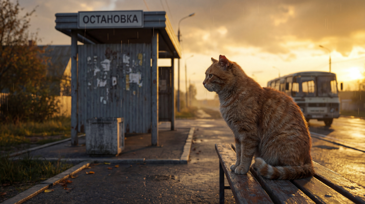 Я пошёл дальше. То место осталось далеко позади. Пустое. Без кота, который ждал столько лет. Столб с расписанием, навес, скамейка. Всё на своих позициях. Но чего-то не хватает. Какой-то детали, которая делала это пространство живым.