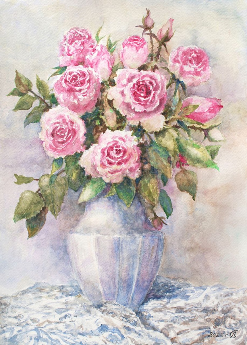 Розовый ноктюрн - бумага/акварель, 36х26, 2026