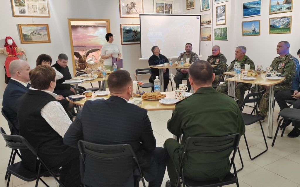 В преддверии Дня защитника Отечества в Цимлянском районном краеведческом музее состоялся Круглый стол с участниками СВО. Сотрудники музея (директор Г.А.Сумцова) создали для этой встречи уютную домашнюю обстановку с горячим чаем, блинами и сладостями. За круглым столом собрались участники СВО Владимир Навроцкий, Александр Мухин, Владимир Усачев и Владимир Пересидлый. Поговорить о насущных проблемах они смогли с главой Администорации Цимлянского района Е.Н.Ночевкиной, руководителем клиентской службы СФР Н.В.Гладковой, врио военного комиссара С.Н.Снежко, а также с социальным координатором фонда «Защитники Отечества» Е.А.Пильщиковым и депутатом Законодательного Собрания Ростовской области М.В.Геласом, которые понимают ветеранов боевых действий буквально с полуслова, так как сами носят это почётное звание. В ходе непринуждённой беседы участники СВО озвучили два основных вопроса – получение новой профессии в режиме дистанционного обучения и предоставление возможности для занятий спортом в фи