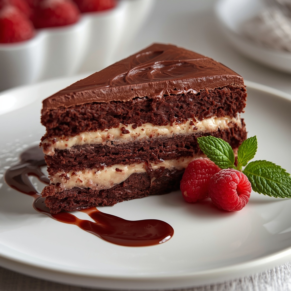 Шоколадный бисквит легко пересушить. Как только шпажка выходит сухой — сразу доставайте. Лучше чуть недопечь, чем перепечь.