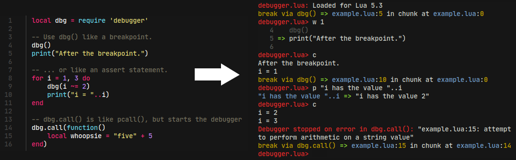 - ZeroBrane Studio — IDE с интегрированным отладчиком для Lua.