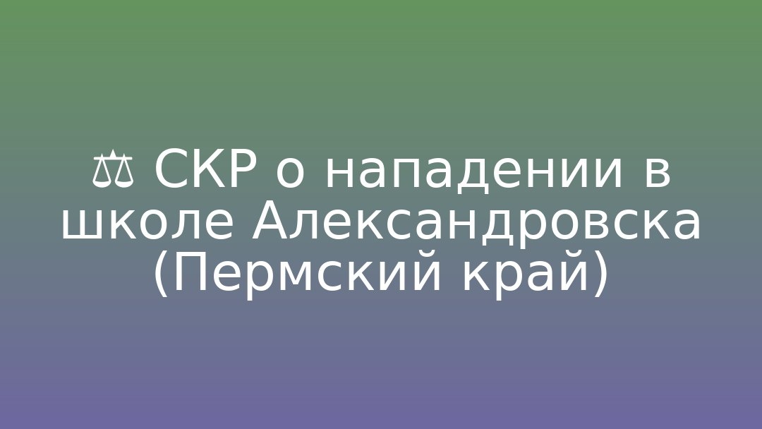 Александровска (Пермский край) после нападения семиклассника на сверстника с ножом на лестнице к 3‑му этажу. Возбуждены уголовные дела по трем статьям: халатность; оказание услуг, не отвечающих требованиям безопасности; покушение на убийство. Председатель СК РФ Александр Бастрыкин потребовал доклад о ходе расследования. Пострадавший доставлен в Березники на операцию; планируется эвакуация в Пермь бортом санавиации. Уроки во всех школах Александровска отменены до 24 февраля.