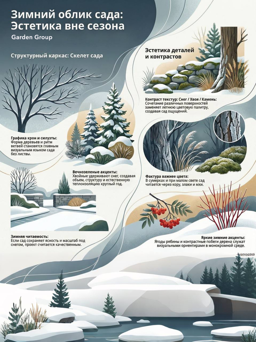 Сохраняйте и отправляйте друзьям, если планируете благоустроить участок в северных районах или просто интересуетесь устойчивым ландшафтом 📌 Северное проектирование — это всегда про нестандартные подходы. Здесь отдельная логика работы с пространством, где важно учитывать климат, эксплуатацию и сценарии использования территории в течение всего года Международное бюро Garden Group активно работает в самых разных регионах со сложными погодно-климатическими условиями, что позволяет нам объединять локальный опыт с мировыми технологиями проектирования и делать сады жизнеспособным в любых условиях Я собрал ключевые принципы северного сада в наглядные карточки: — почему важно учитывать мерзлоту — как работает геопластика и микрорельеф — какие ошибки чаще всего совершают при озеленении в северных регионах ❄️Я сам родился в Сибири, и эстетика Севера мне максимально близка. Считаю, что она долгое время была недооценена, но сегодня «северный код» уверенно становится одним из самых выразительных и