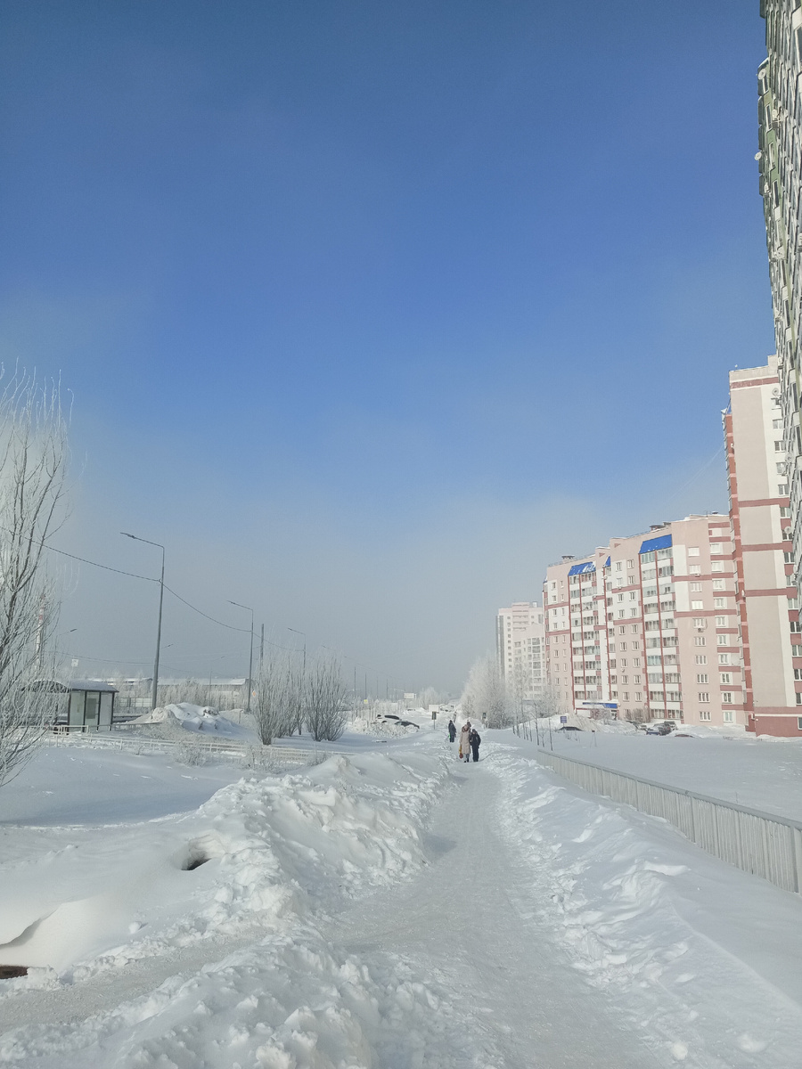 Сегодня такой солнечный, морозный день. А утром был туманище.