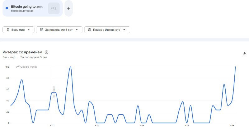 π» ΠΠΎ Π΄Π°Π½Π½ΡΠΌ Google Trends, ΡΠΈΡΠ»ΠΎ Π·Π°ΠΏΡΠΎΡΠΎΠ² Β«Bitcoin going to zeroΒ» (Β«ΠΠΈΡΠΊΠΎΠΈΠ½ ΠΎΠ±Π½ΡΠ»ΠΈΡΡΡΒ») Π΄ΠΎΡΡΠΈΠ³Π»ΠΎ ΠΌΠ°ΠΊΡΠΈΠΌΡΠΌΠ° ΡΠΎ Π²ΡΠ΅ΠΌΡΠ½ ΠΊΡΠ°Ρ Π° FTX Π² Π½ΠΎΡΠ±ΡΠ΅ 2022 Π³ΠΎΠ΄Π°.