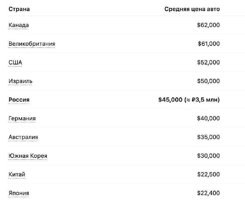 Автомобили в России вошли в пятерку наиболее дорогостоящих в мире