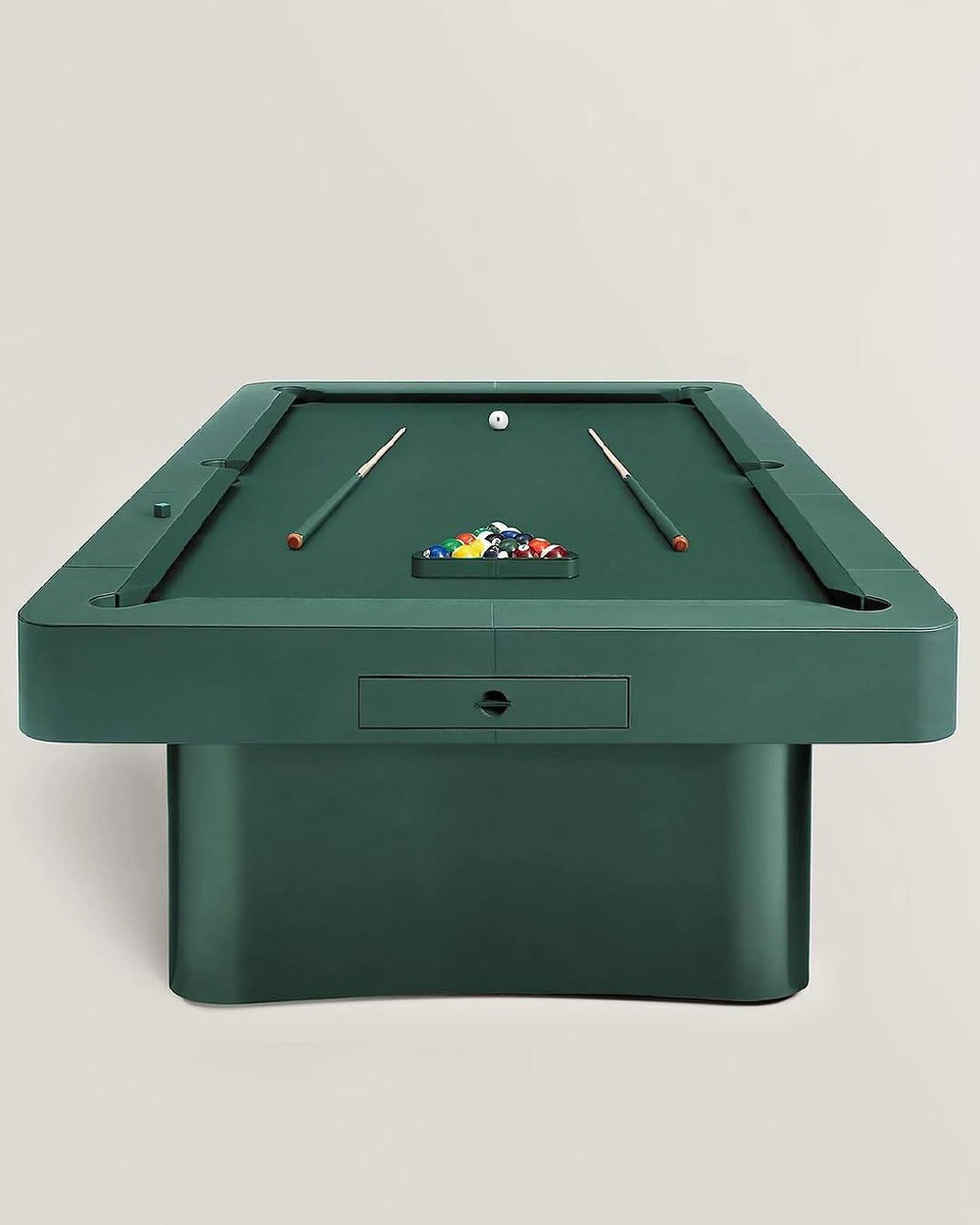 😎 Бренд выкатил стол за ~🔢🔢миллионов рублей. Полностью в фирменной зелёной коже, с эксклюзивными шарами и киями. Ручная работа, премиальные материалы — всё как положено. 🔖 По сути, это не стол, а способ показать, что у тебя есть ещё одна квартира. Просто она лежит горизонтально, но не факт, что по ликвидности сравнится с московской однушкой. 😆 Если вдруг возник вопрос «что за бренд такой?» — это Hermès.