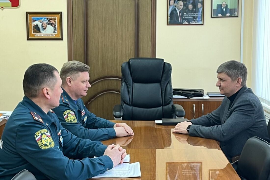 В Кузнецке прошла рабочая встреча главы города Виктора Агафонова и начальника главного управления МЧС России по Пензенской области генерал-майора внутренней службы Дмитрия Козлова. В ходе мероприятия Агафонов и Козлов обсудили следующие вопросы: — обеспечение безопасности граждан в период весеннего паводка; — подготовку к весенне‑летнему пожароопасному периоду; — готовность всех формирований к оперативному реагированию на возможные чрезвычайные ситуации; — усиление противопожарной безопасности на объектах социальной инфраструктуры. Как сообщили в телеграм-канале администрации Кузнецка, по результатам встречи между сторонами была достигнута договоренность о взаимодействии всех ответственных структур в целях обеспечить пожарную безопасность и минимизировать риски возникновения ЧС. Ранее мы писали о том, что из-за обильных снегопадов этой зимой пензенские власти готовятся к серьезному паводку. В администрации прошло заседание комиссии по чрезвычайным ситуациям.