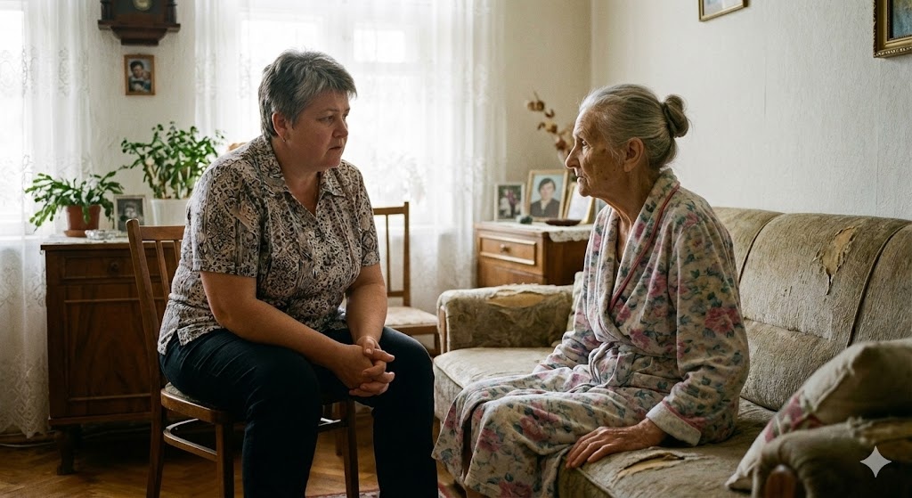 Олег принёс продукты. Лена приготовила бульон — простой, куриный. Зинаида Петровна ела медленно, по ложке. Её руки дрожали.