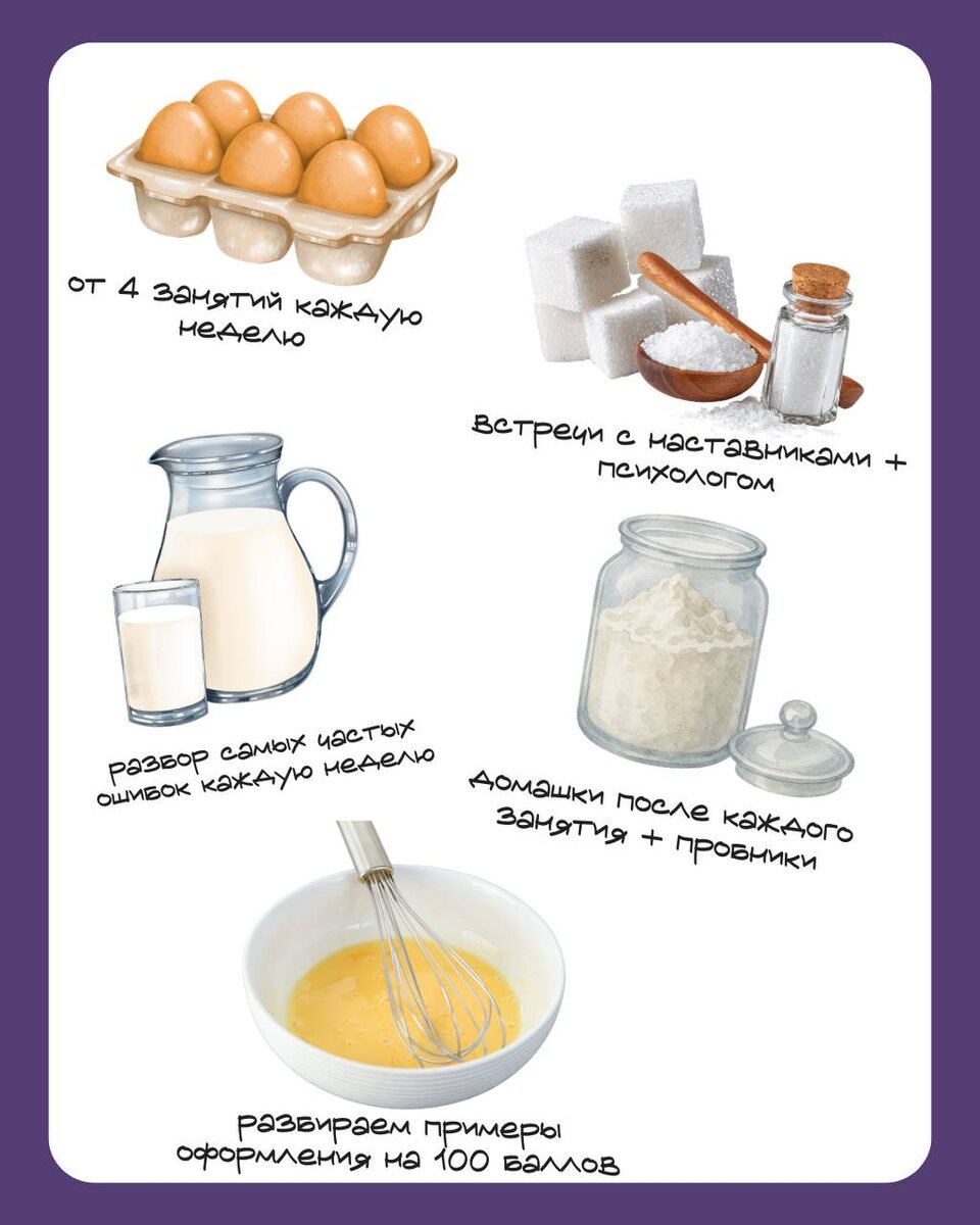 ! 💯 🍪Занимаемся по выстроенной индивидуальной траектории (от 4 вебов в неделю) 🥚Разбираем самые частые ошибки 🥛Закрепляем каждую тему, выполняя домашки + пишем пробники 🥞Разбираем примеры оформлений на 100 баллов 🍪Встречаемся с наставниками на созвонах для разбора всех возникающих вопроса (+ раз в месяц психолог, чтобы снизить тревогу) Калорийность блюда: +30-40 баллов к текущему прогрессу 💪 Как итог: сдаете ЕГЭ на высокие баллы и поступаете в ВУЗ мечты! Попробуй вкус «Ключевой сотки» 🤓